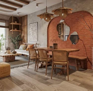 Our design philosophy for 2BHK, 3BHK, and 4BHK homes focuses on blending rustic charm with modern elegance, creating warm, inviting spaces with character and depth. For 2BHK homes, we’ve crafted layouts that maximize space without compromising on style. We often use neutral tones, textured walls, and wooden paneling to evoke a sense of grounded beauty. Metal fixtures like wrought-iron chandeliers and sleek vintage-inspired hardware add a rustic, industrial edge to these compact homes, giving them a cozy yet sophisticated atmosphere.