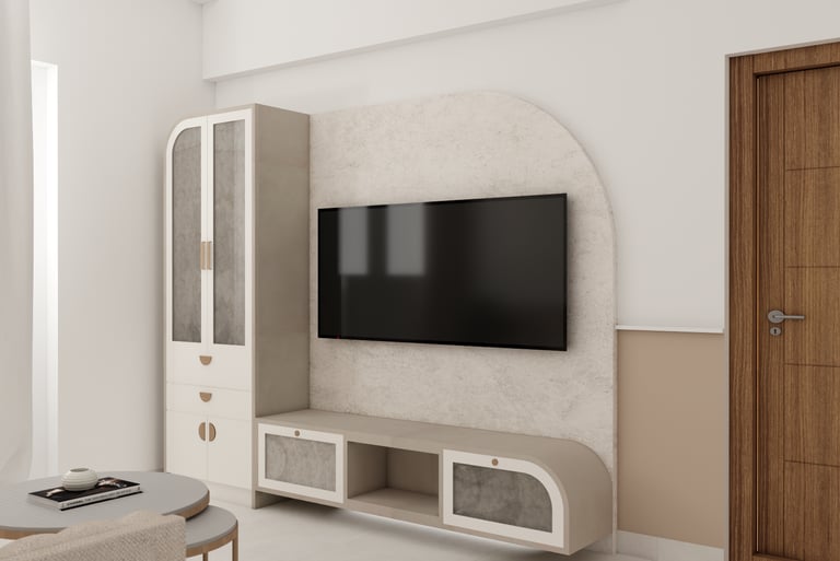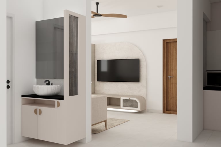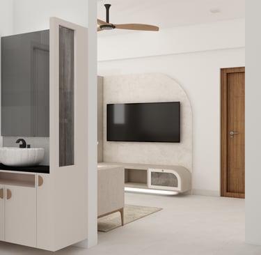 Executed over a span of 45 days, this 2 BHK residence at Bhavya Dazzle was transformed into a minimalistic modern haven tailored to reflect the personality and lifestyle of our client, Arpita. With a vision to create a space that feels bright, balanced, and full of character, every corner was thoughtfully planned and styled.
