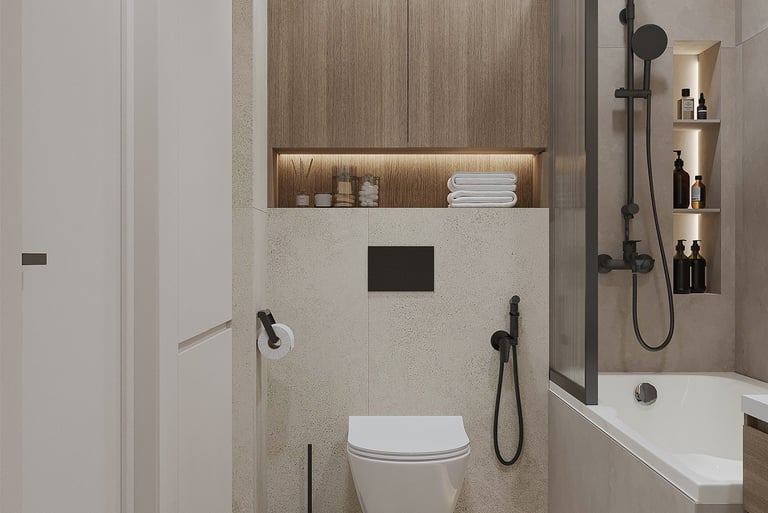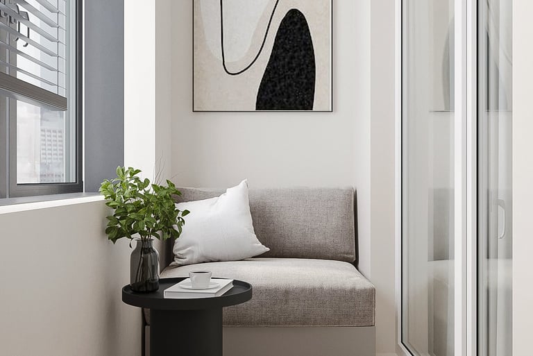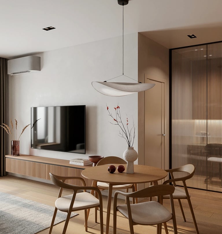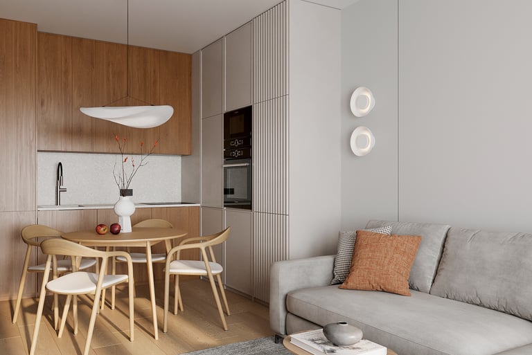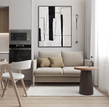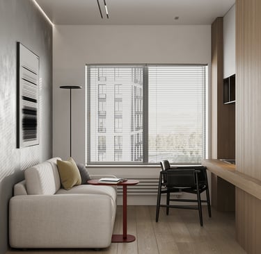The Modern Manor offers a stylish yet cozy living experience, perfectly suited for those who appreciate design over luxury amenities. The 1BHK units are meticulously designed to maximize space, featuring a seamless flow between the living area and a well-appointed kitchen. The aesthetic emphasizes clean lines, natural materials, and warm color palettes, creating a welcoming environment. Large windows enhance the sense of openness, allowing natural light to flood the rooms and highlighting the elegant decor.