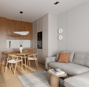 The studio condos embody a minimalist approach, showcasing clever layouts that make the most of every square foot. Thoughtful design elements, such as built-in shelving and multifunctional furniture, provide both style and practicality. The cozy living space effortlessly transitions from a sleeping area to a comfortable lounge, reflecting a chic and functional lifestyle.
